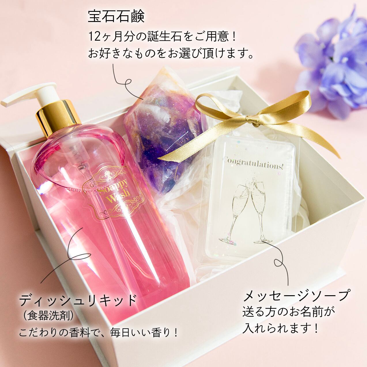 宝石石鹸と対応したディッシュリキッドのカラーをセットしています。
